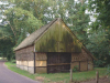 hersteld en voorzien van strodaken, vlechtwerk en lemen wanden.